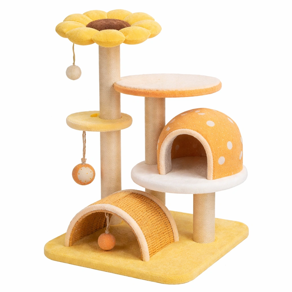 Árbol para gatos de madera y sisal amarillo naranja