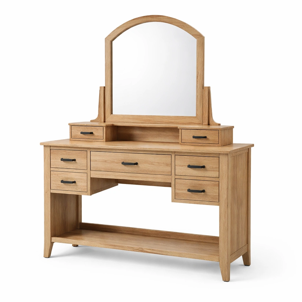 Tocador de madera con espejo y cajones