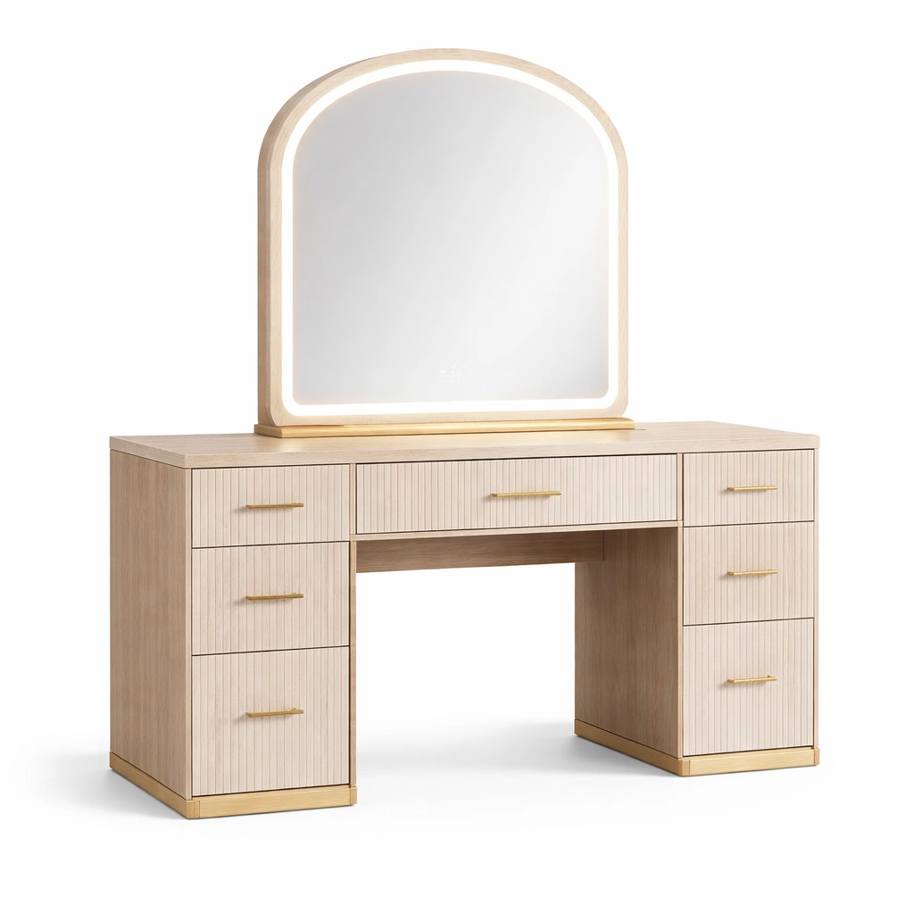 Tocador con espejo LED de madera y metal