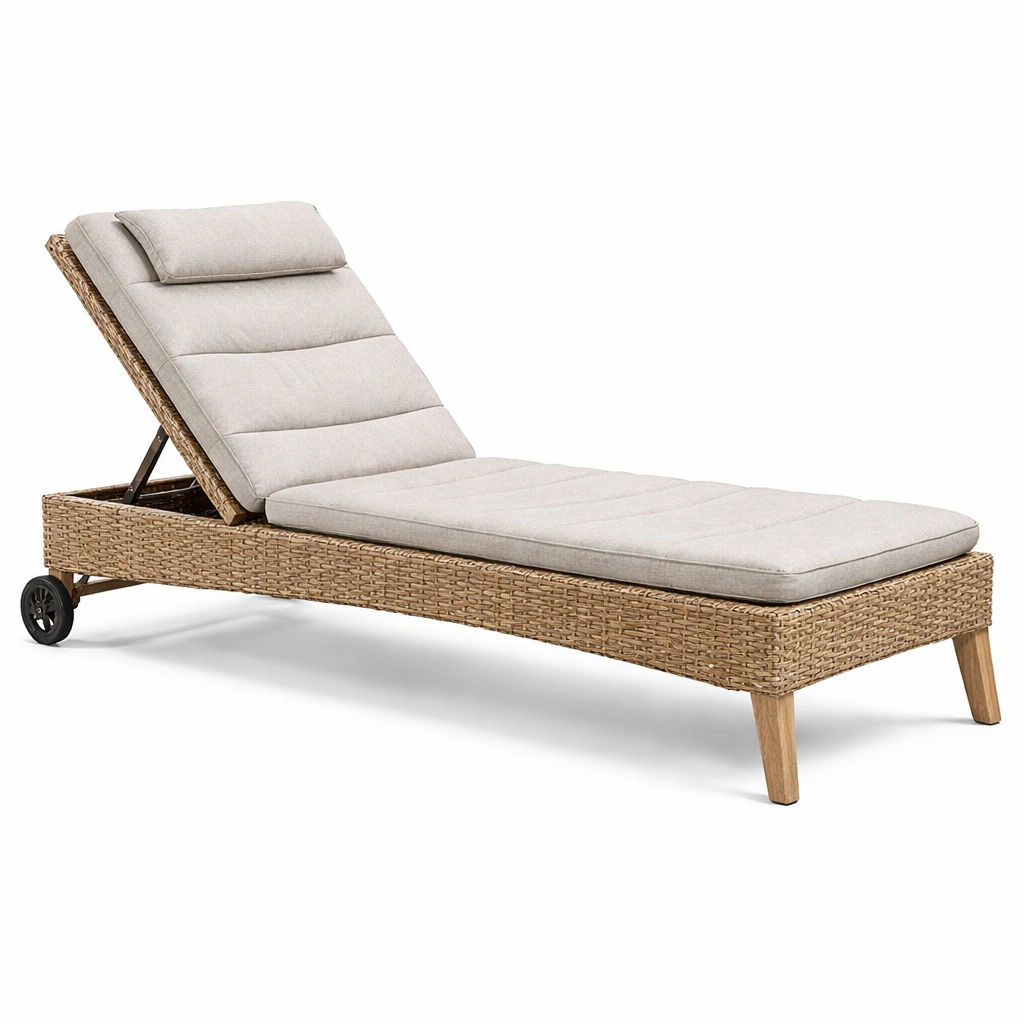 Tumbona de ratán sintético con cojín ajustable y ruedas