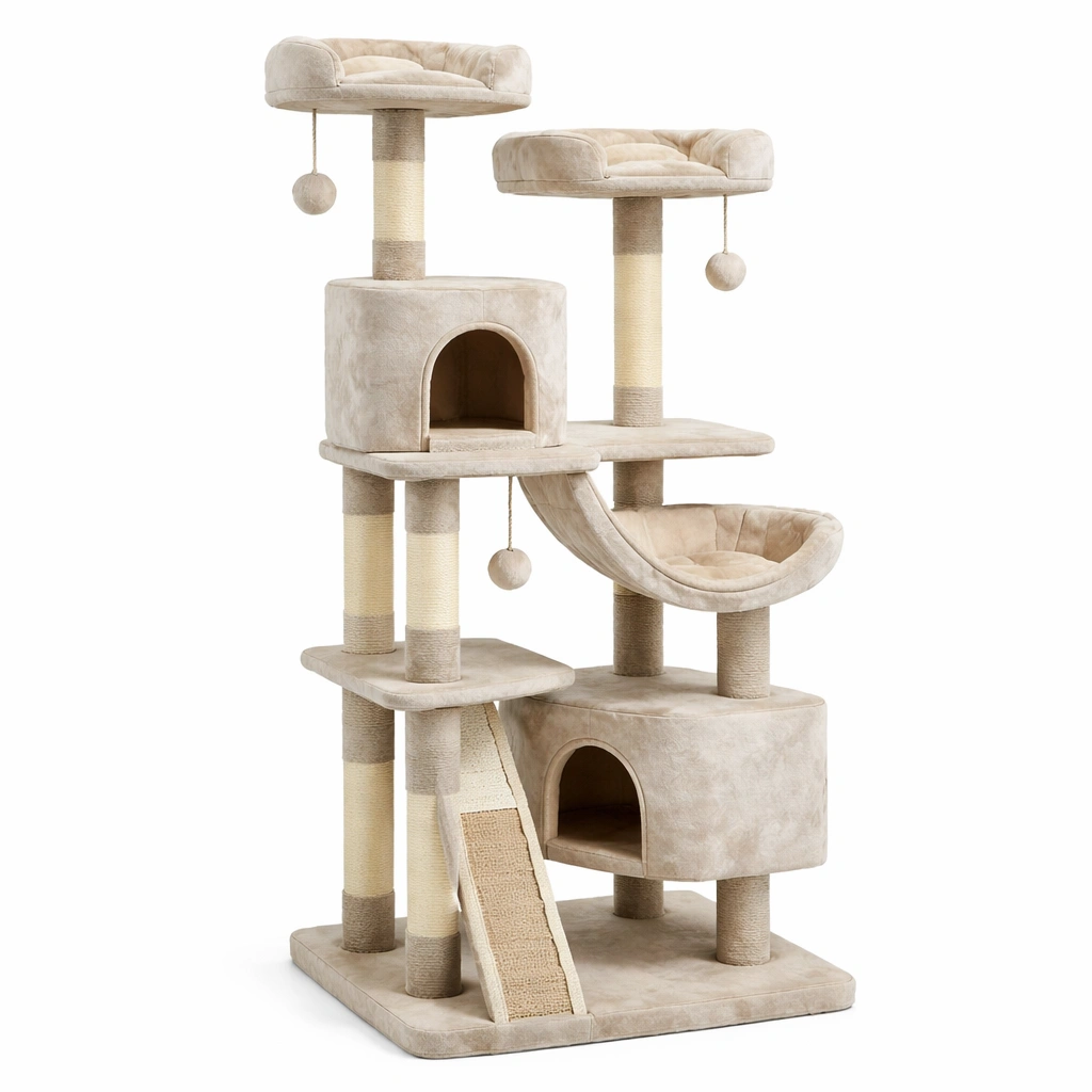 Árbol para gatos con rascadores de sisal y plataformas de peluche beige