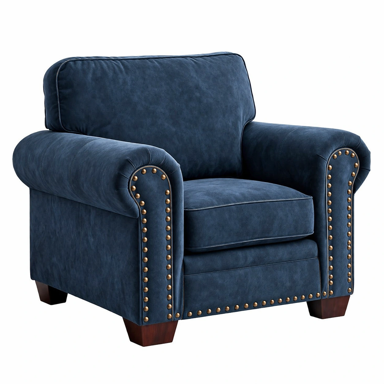 Sillón de microfibra azul con tachuelas