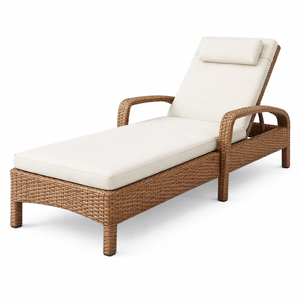 Material: Estructura de ratán sintético, cojín de espuma de alta densidad con funda de poliéster.